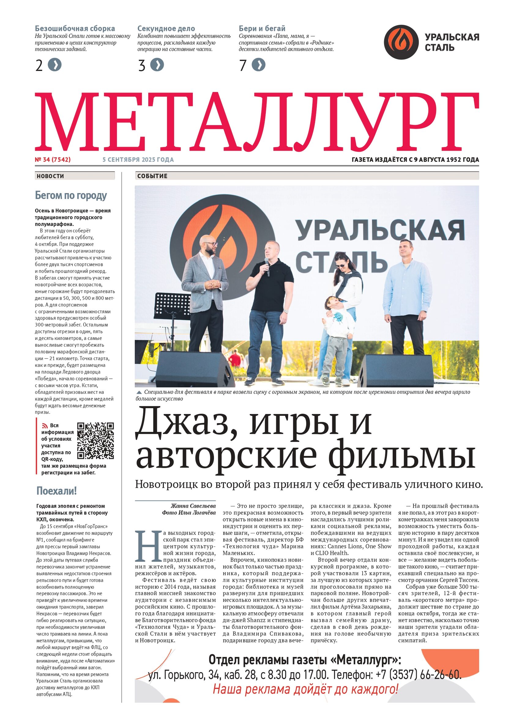 На выходных городской парк стал эпицентром культурной жизни города, праздник объединил жителей, музыкантов, режиссёров и актёров. Фестиваль ведёт свою историю с 2014 года, называя главной миссией знакомство аудитории с независимым российским кино. С прошлого года благодаря инициативе Благотворительного фонда «Технология Чуда» и Уральской Стали в нём участвует и Новотроицк.